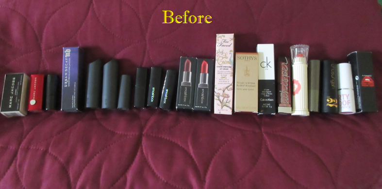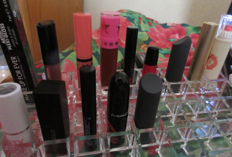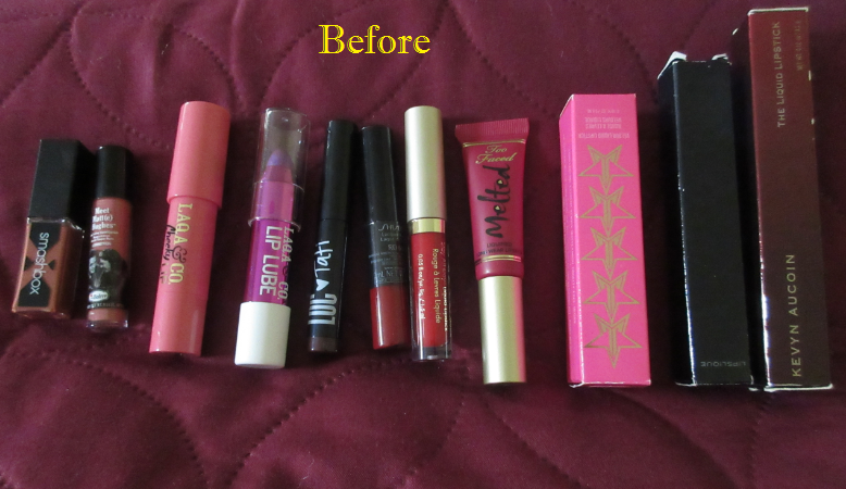 There comes a time when every makeup lover has to invest in better organizers or scale back on future purchases. I decided to do a little of both! I purchased a 36 slot acrylic lipstick holder and decided that I would only store as many lip products as I could fit on that tray. This meant I had to rifle through my collection and find the items that needed to be given away, sold, or tossed.