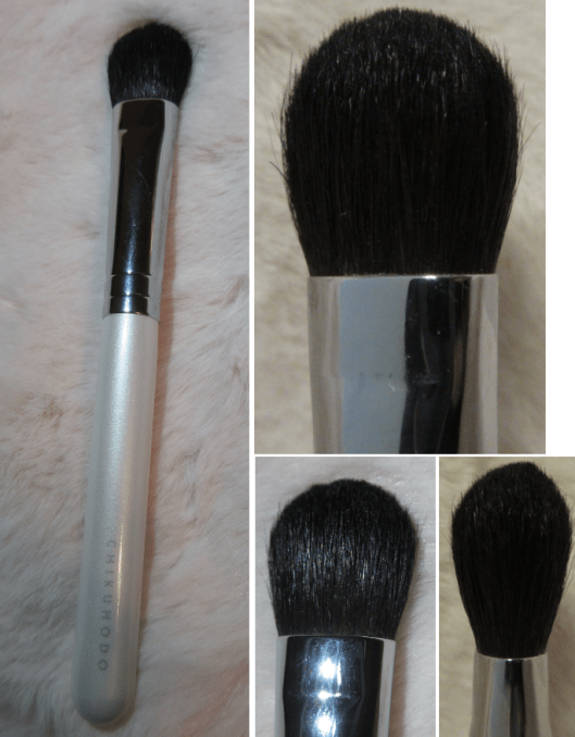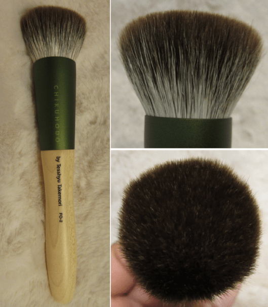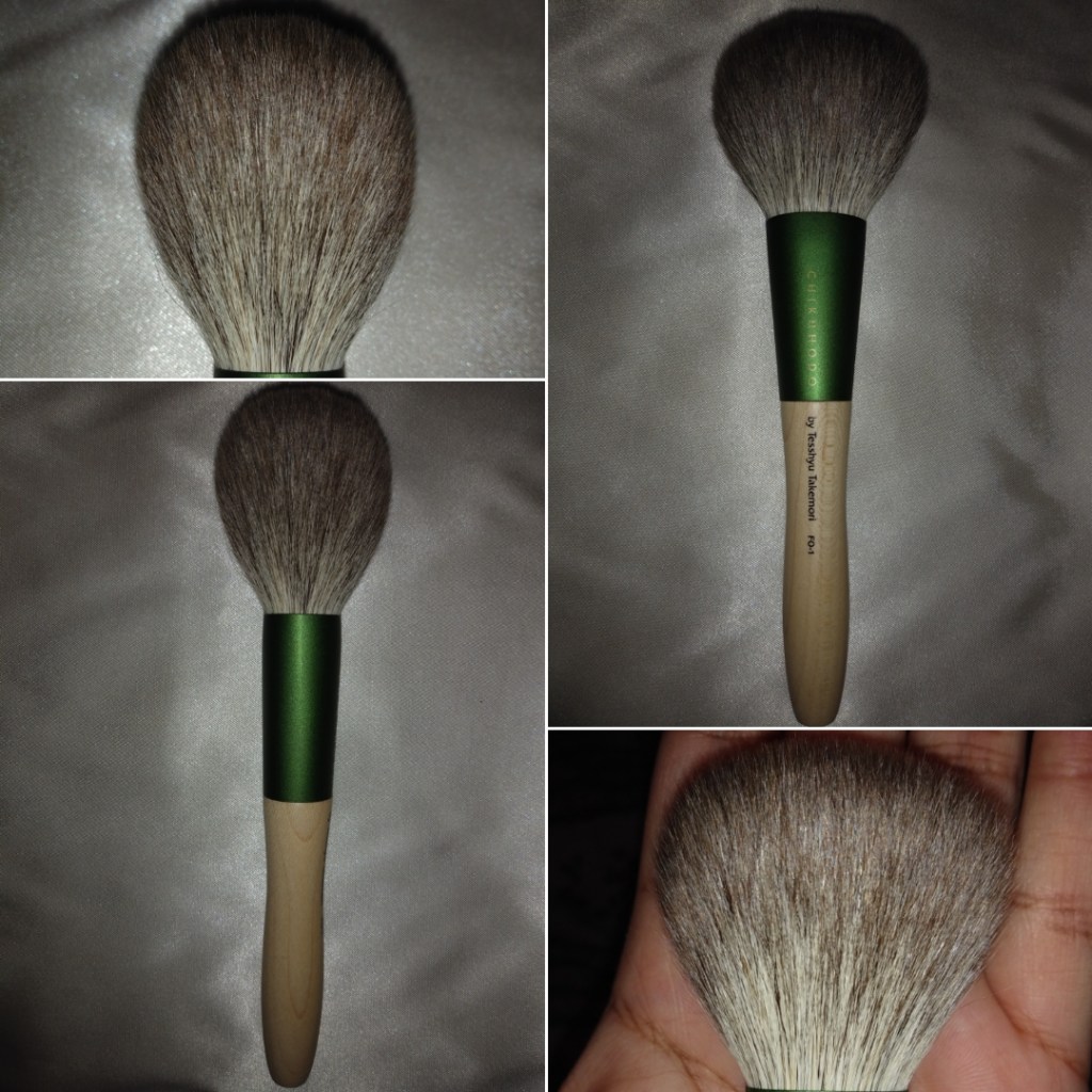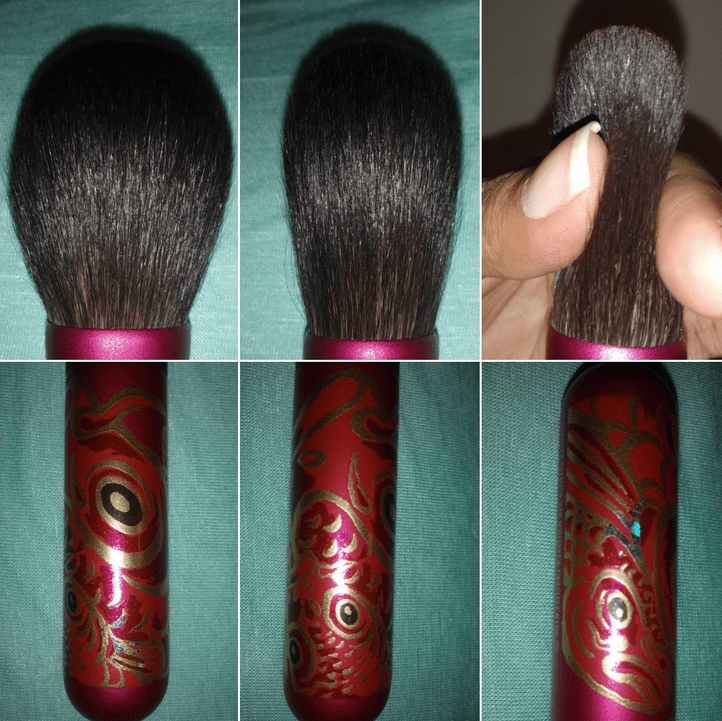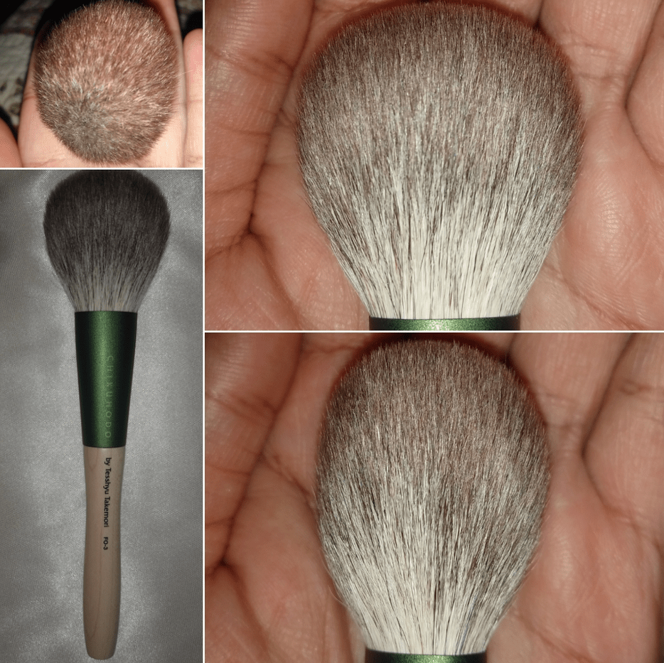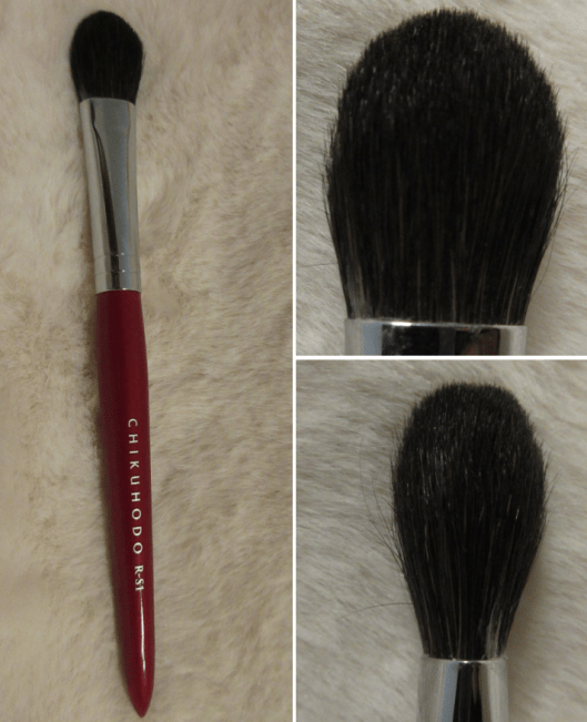 Saikoho goat hair at this size for that price ($54 instead of $78) is a fantastic deal! It’s so large that the only product I’d use to apply with this is powder all over my face. My favorite use though is as an all-over finishing buffing brush because it’s fairly dense with durable enough bristles to sustain me using it a little rougher. CDJapan occasionally has outlet brushes for sale, which means there is a small flaw. I have been unable to detect any issues with this brush, which gives me confidence in purchasing more outlet brushes in the future.