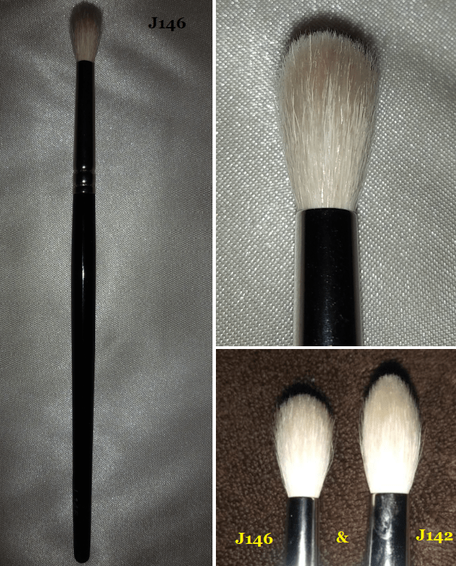 The 146 is available in multiple series’ as well. It’s slightly shorter and thinner than the 142. Deciding which version is the best depends on the customer’s preferences. The more expensive brush doesn’t automatically make it better. Squirrel hair will give a softer wash of color, softer blend, and softer application. When it comes to eyeshadow, I want a more resilient bristle such as goat hair which is soft but also less fragile. Most of the time I want the maximum color-payoff and not a sheer application that a squirrel brush will provide. That’s not to say the squirrel brush cannot build up color. It would just take longer, especially as these brushes are meant to be used gently. It’s why I prefer squirrel hair for my powder complexion products and high-quality goat hair for eyeshadows. I used to prefer the 142 over this one, but as I got older and my eyes became even more partly hooded, I began to prefer the tip shape of this one instead.