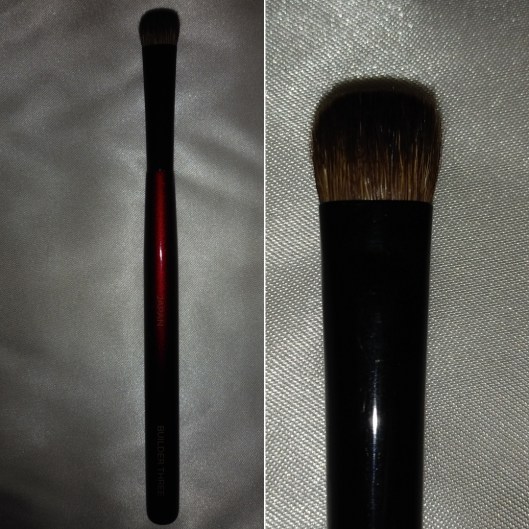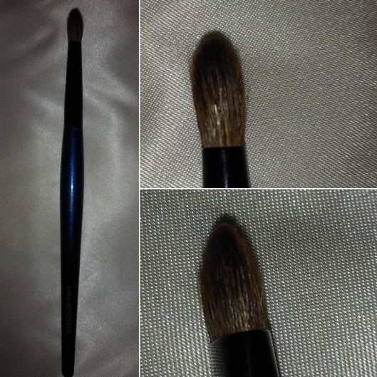 This brush is available in a variety of fibers: goat, horse, goat/horse mixture, blue squirrel, and synthetic. This brush is commonly touted as the equivalent of the MAC 217, Wayne Goss 18, and Sonia G Worker Pro. I don’t use this brush that often, as I feel more comfortable using my cheaper brushes with this head shape (until the Sonia G Builder Three). Though the shape is more beneficial for packing/patting, I sometimes use this to apply a wash of color above the crease or blow out one shade.