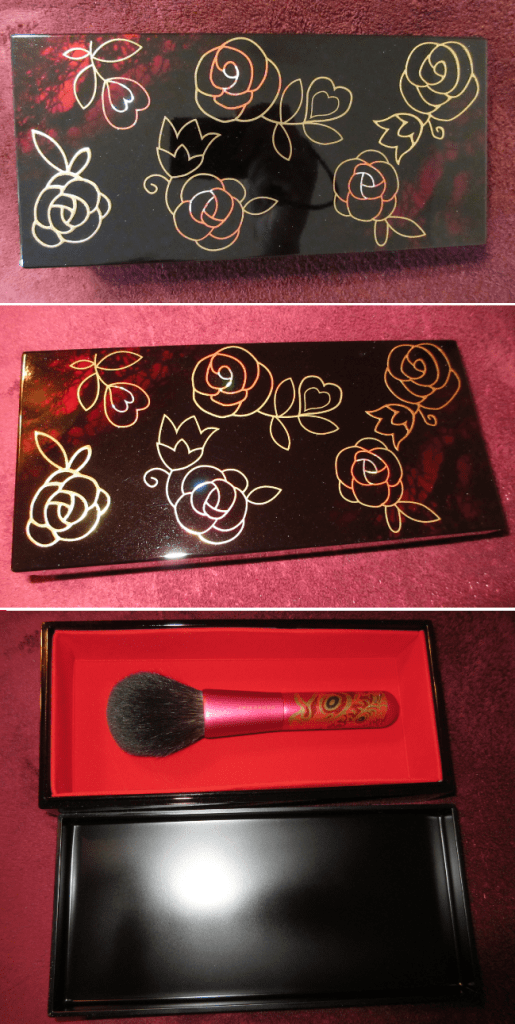 This box is the tortoiseshell black color, but it’s also available in red and beige. I bought this originally for my MK-KO but I’ve since found a better storage method that won’t disturb the bristles from laying flat.