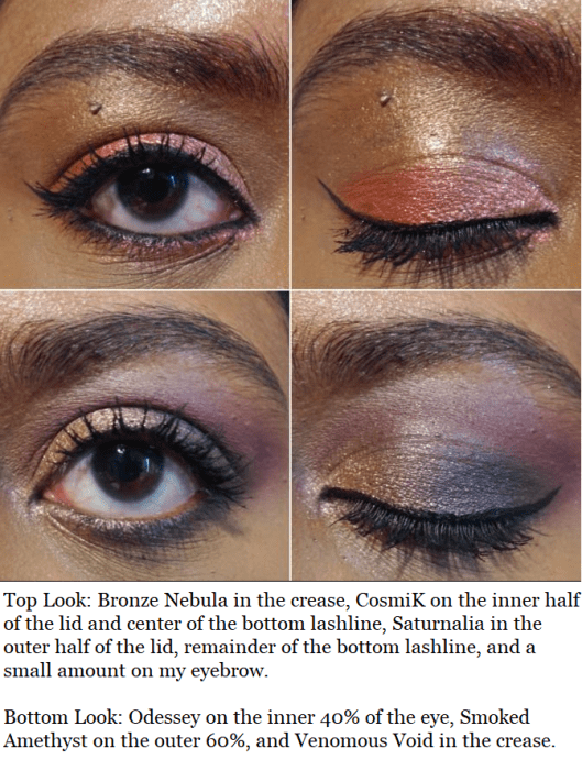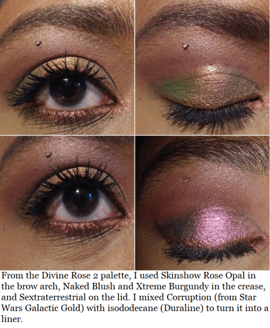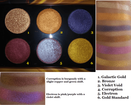 As for repeats, there is a shade called Corruption in the MTHRSHP Sublime Bronze Temptation palette and Smoked Amethyst in MTHERSHP Subversive Metalmorphosis palette that both appear in the Star Wars Dark Galaxy palette. The shades Bronze and Gold Standard from Subversive Metalmorphosis are in Star Wars Galactic Gold. Gold Standard is also in the Decadence Palette and Mini Eye Ecstasy.