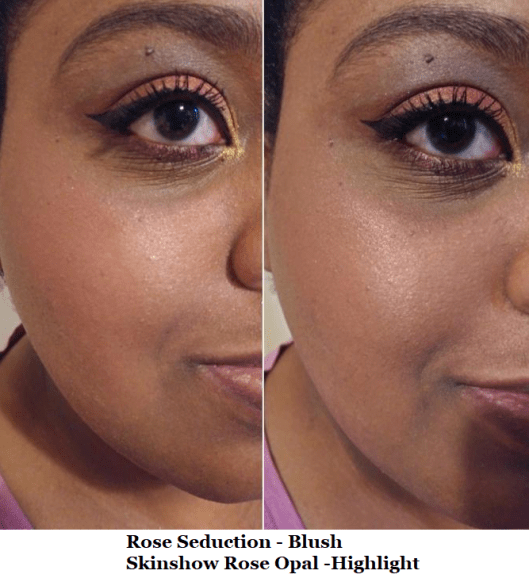 This palette somehow turned me into a pink eyeshadow lover! The shade Rose Seduction is considered safe in the EU, which is often ahead of the US in terms of cosmetic safety, but the FDA hasn’t updated their stance on eye-safe pigments, so this is an “artistry” palette rather than an “eyeshadow” palette. What sold me on trying this out is that Kinkysweat on Youtube suggested that Naked Blush and Rose Seduction could be used for blush, Skinshow Rose Opal as a highlighter, and Astral Pink Moon as a highlight topper. It turns out that both Rose Seduction and Naked Blush work as a blush for me since Naked Blush deepens up when applied to the skin. Rose Seduction also looks like it would be far too bright, but it’s subtle looking on my cheeks with my Chikuhodo blush brushes. I don’t like Astral Pink Moon on the cheeks because of how glittery it is, but Skinshow Rose Opal makes a fun pinkish gold highlight.