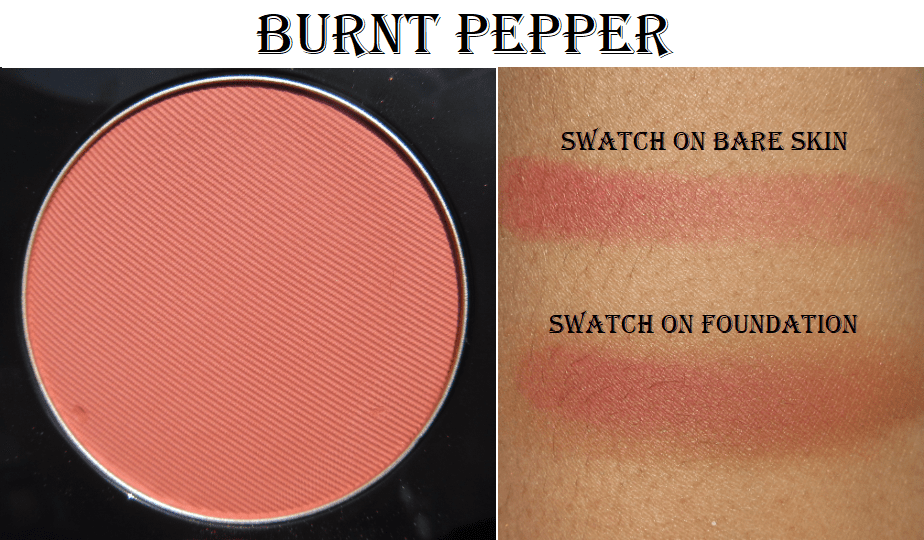 Melba is described as a matte soft coral-peach. This blush highlights the reason I wanted to do this post. Based on the shade in the pan, I would never expect a shade this light to be in any way flattering on my skin tone. There’s enough peachiness to keep it from appearing ashy on my skin tone the way other blush shades that are too light would look. Although this is extremely subtle on camera, it’s more noticeable in person as a natural-looking slightly pink flush. Melba isn’t as pigmented as some of the other matte blushes, so it takes quite a lot of building up in order to be seen on my skin tone, but I find the effort is worth it.