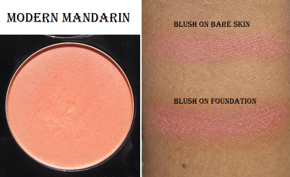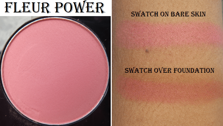 Fleur Power is a soft bright pinkish-coral satin finish. It’s a pretty shade and very pigmented! It looks and performs more like a matte than a satin. It also deepens up a lot when applied over foundation. I made sure to give adequate time for the foundation to set before I put Fleur Power on top (in case it was too wet and therefore causing it to darken so much), but it did not change the result. It deepens the more it’s rubbed into the skin.