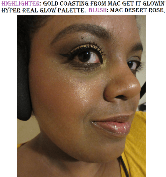 Unlike the highlighting trio, which didn’t appear that much more intensified when applied to wet skin, the formula of this shade allows it to be built up a lot more. But I’ve never been interested in rocking a blinding highlight, so I’ll continue to use it dry the way I normally do. I would describe the shade as a light gold, but MAC says it’s a, “light soft white with shimmery sheen.”