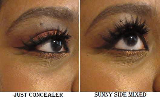 The best use for Sunny Side I have found is as a color-correcting setting powder under my eyes. As I’ve gotten down to the last bits of my Tarte Shape Tape concealer, it hasn’t been covering my dark circles as well. This powder is perfect for brightening up and covering up darker patches. I’m not sure how well I captured it in the photo, but it’s a very noticeable difference in person.