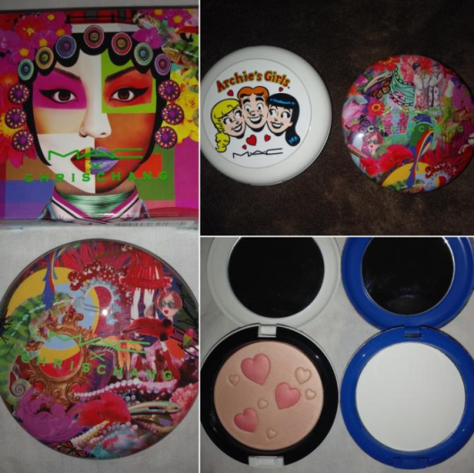 The Archie’s Girls Collection Flatter Me Pearlmatte Face Powder and MAC x Chris Chang Prep + Prime Transparent Finishing Powder are both items I purchased purely for packaging. In fact, I even bought a second Chris Chang compact (each compact is unique in pattern) so I could remove the actual product inside and put one of my DIY blushes or highlighters inside. That way, I could keep one in nearly pristine condition (the original translucent powder was too stark on me), and the other I’d be able to use without worrying about damaging it.