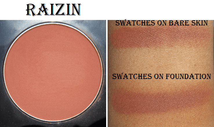 When searching for blushes best suited for dark skintones, Raizin was the most suggested shade I saw. It is a golden reddish-brown matte and very pigmented. I dipped my brush into the pan once and this is the amount of color that was deposited onto my cheek. With just one application!