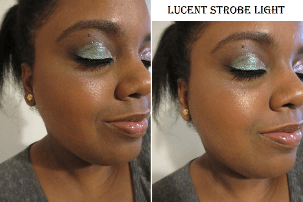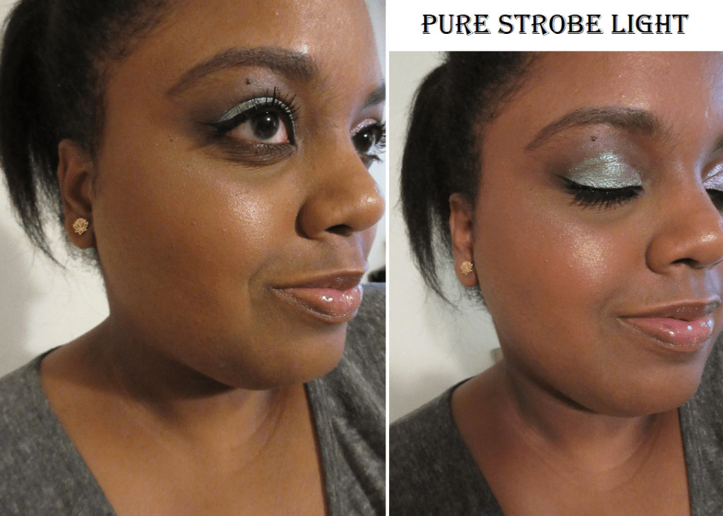 The best use of the Hourglass Trio I’ve found is to use Pure Strobe as an inner corner of the eye highlight and Lucent Strobe as a spotlight/pinpoint highlighter. I basically use a regular highlighter along my cheeks and at the very highest point of my cheekbone add Lucent Strobe to make that spot stand out even more. All that these Metallic Strobe powders really need is to be mixed with something deeper, and then the outcome is much more to my liking. In the photo below, I used Nabla’s Amnesia highlighter, which is not an example of a deeper highlighter, but of one that’s on the more subtle side that was amped up by Lucent Strobe.