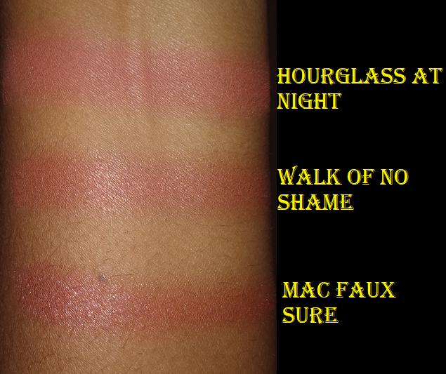 I’ve come to the conclusion that I like this blush, but I would have loved it if it was more pigmented. A few times I’ve actually used a mixture of both colors with the At Night blush from Hourglass on top to add more color without as much extra shimmer.