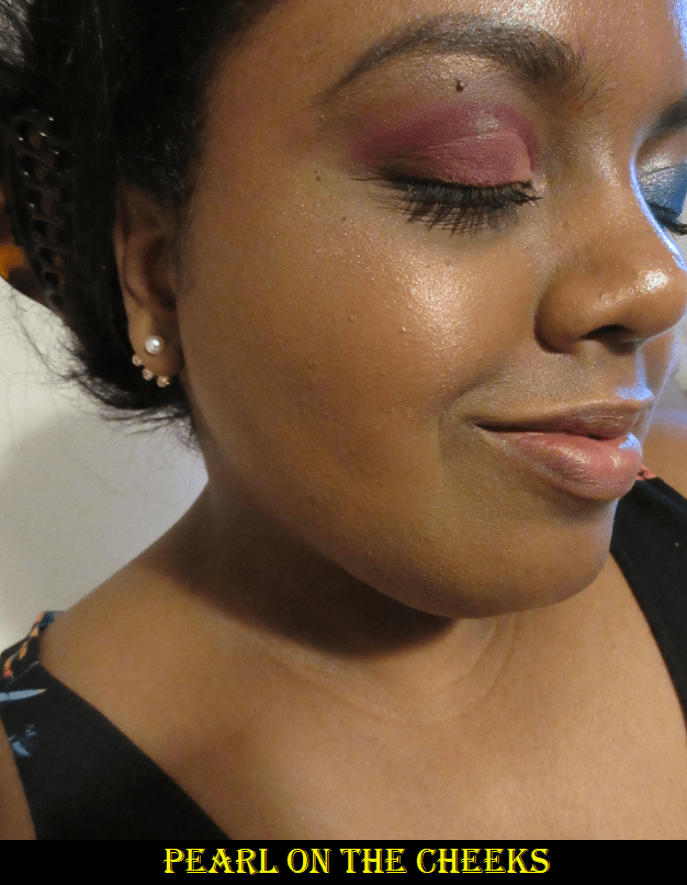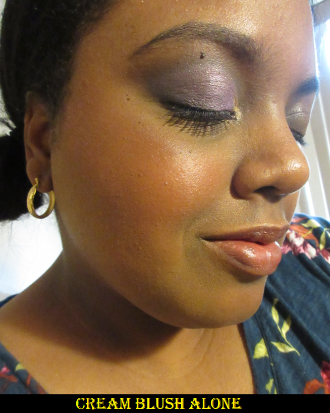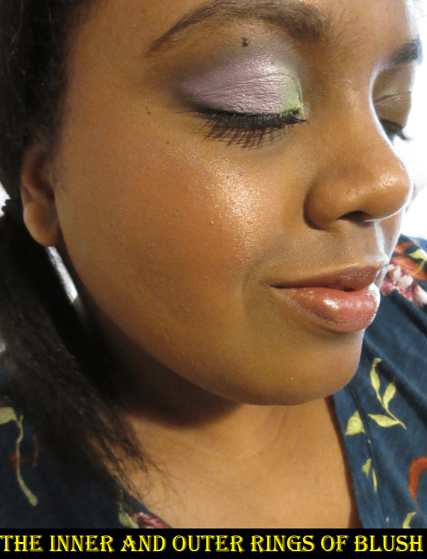 The outer “berry” ring is quite light on me, which I don’t mind, but mixing it with the inner “champagne” ring on my cheek lightens it up even more to the point of being a whisper of color with a whole lot of shine.