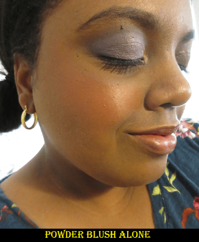 I saw plenty of reviews before buying this blush, so I knew ahead of time that this range was on the softer side and not super pigmented. This is the darkest blush in the line and as you can see in the swatch, it’s lighter than my skin tone, but I still like the way it looks. Something about the tone of it is very flattering to me. For the price though, I don’t know that I’d necessarily recommend it considering how many other nice buildable blushes there are of equal or better quality, yet for better prices.