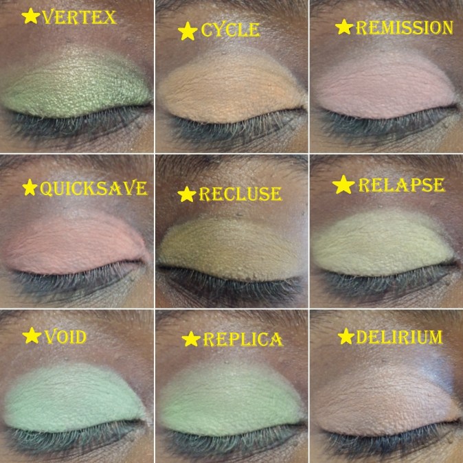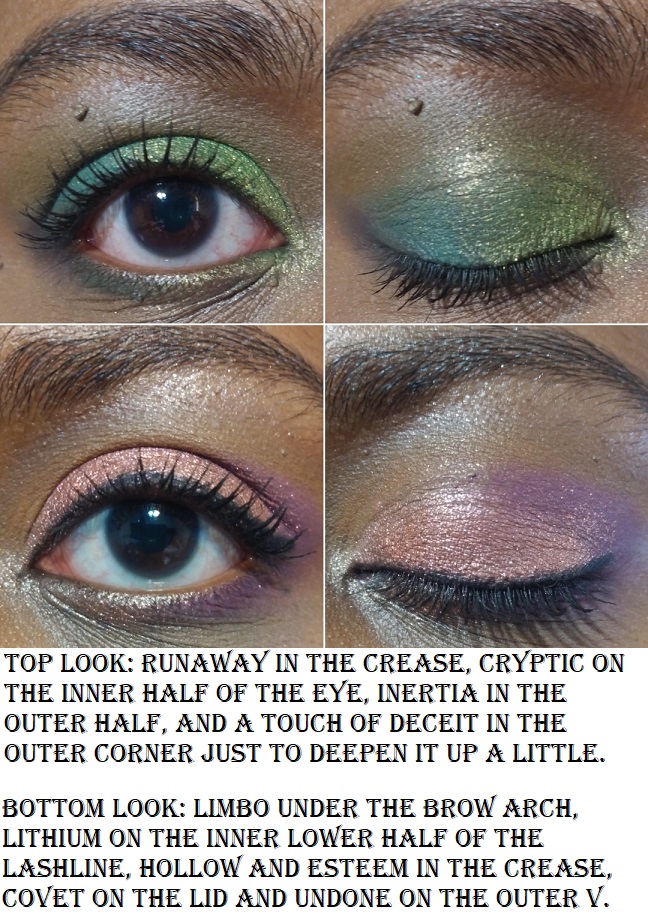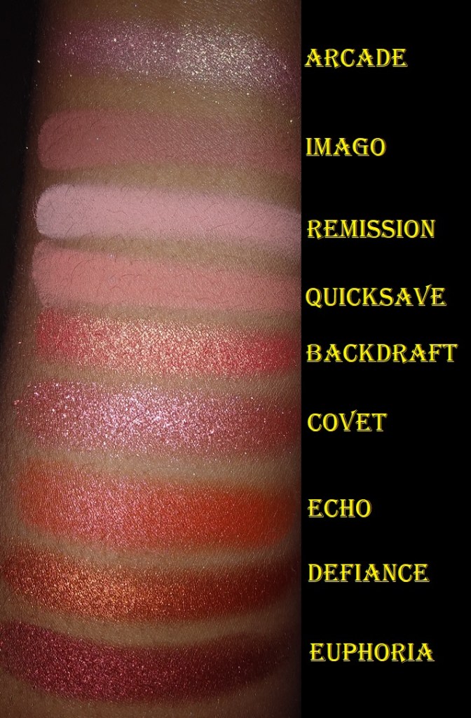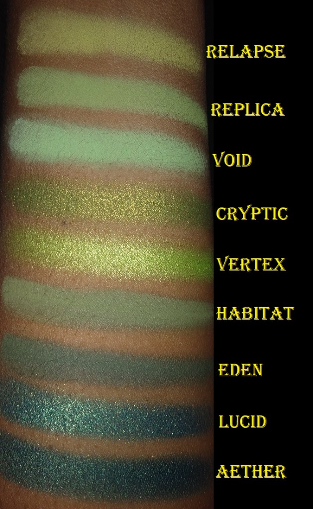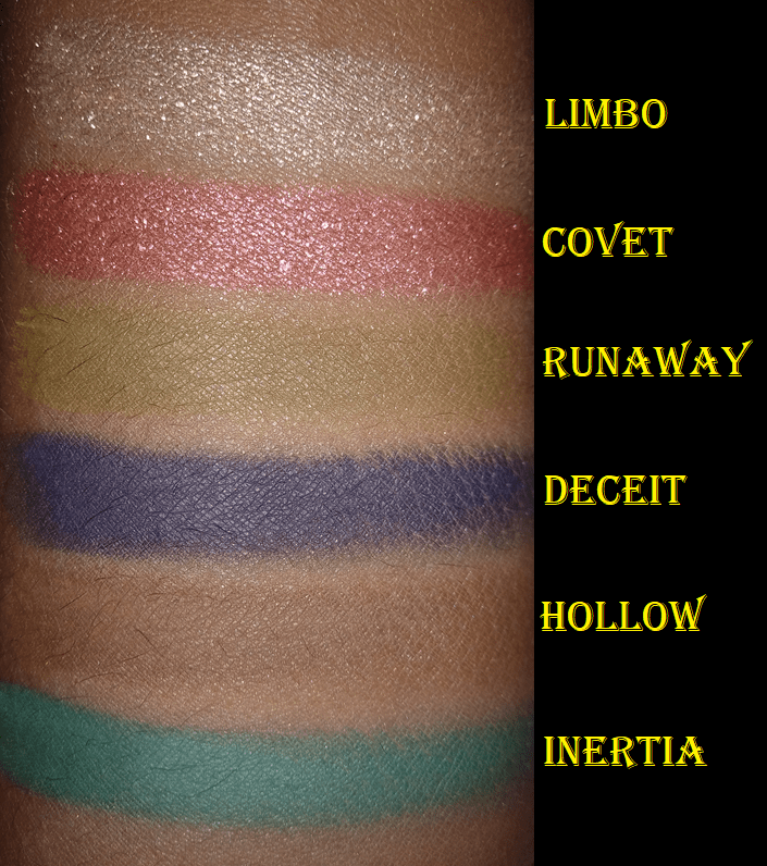 These pans are also available for purchase individually, which is why I counted them as part of Lethal’s 90 current shadows. What made the Velvet Dusk collection especially exciting is that for the first time, Lethal introduced two “triochrome” eyeshadows.