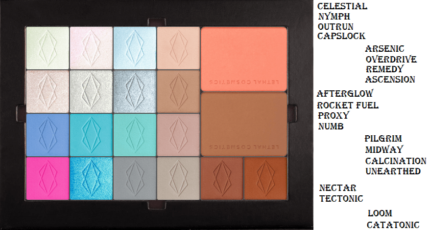 Overall, I find the quality of this palette to be consistent with Lethal’s single eyeshadows. With the exception of a few shades, there are close enough similarities to other Lethal singles that I don’t think this palette is a necessity for anyone with a large enough collection of their shadows. If your collection is on the smaller side, this is a great way to get a variety of neutrals with vibrant pops of color at a more affordable price. The pans in this palette are smaller than the individual shades, but I have still yet to hit pan on any eyeshadow in my collection, even with mini palettes.