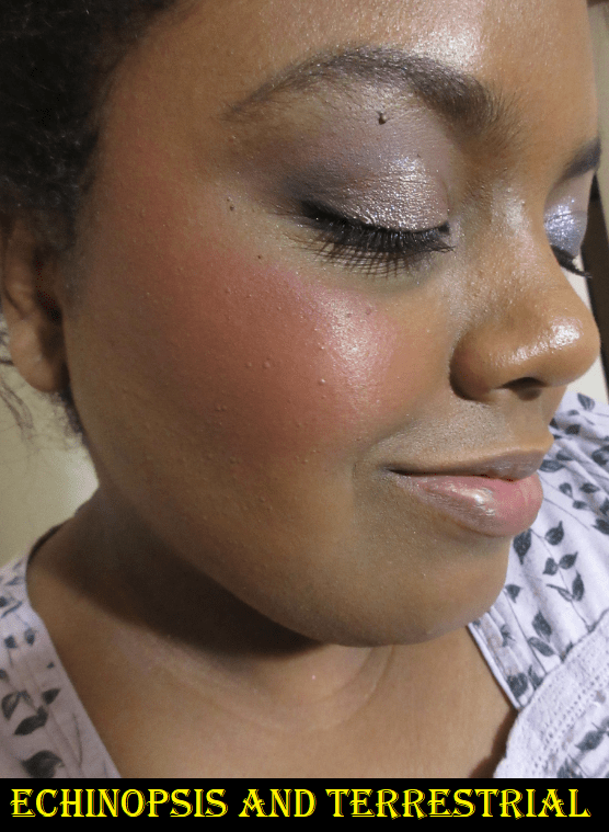 Calyx was more orange than I expected. Echinopsis is more of a berry color, and darker, but it can be worn in a sheer layer as demonstrated in the photo above (a heavier application is in the Terrestrial section). Between the two, I think Echinopsis looks better on me.