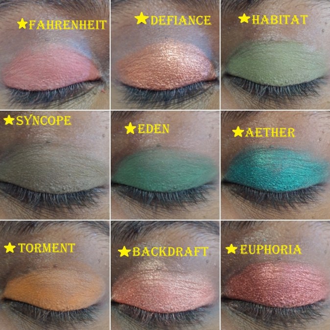I’ve found that the mattes work better over MAC Paint Pot and the shimmers work better on the Urban Decay primer potion or a non-dry base, even though Lethal recommends a dry base for all of them.