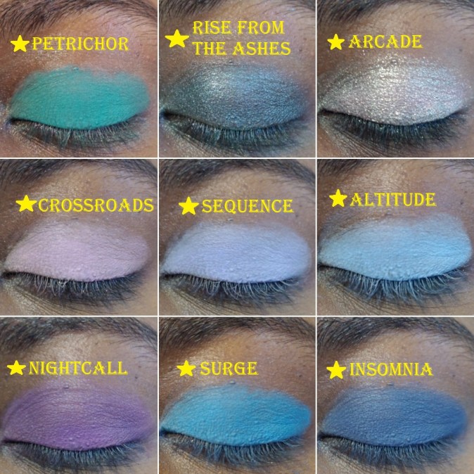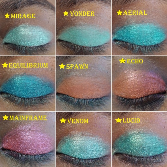 This palette is another great mix of pops of color with neutrals, just with a grungy twist. It isn’t perfect, but I would still recommend this to anyone who likes the color story. I don’t recommend this to someone specifically wanting it for the duochromes and multichromes. For those kind of shadows with more impact, I suggest Clionadh, Devinah, and Terra Moons. Even JD Glow’s Galaxy Shadows have more sparkle and shine.