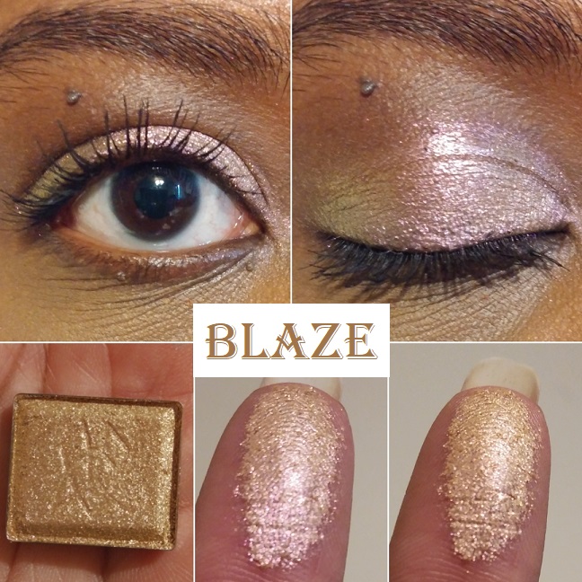 Honeycomb – from the Woodlands Collection. As, “a warm beige metallic with gold sparkle,” I bought this shade to use specifically as an intense inner corner highlight.