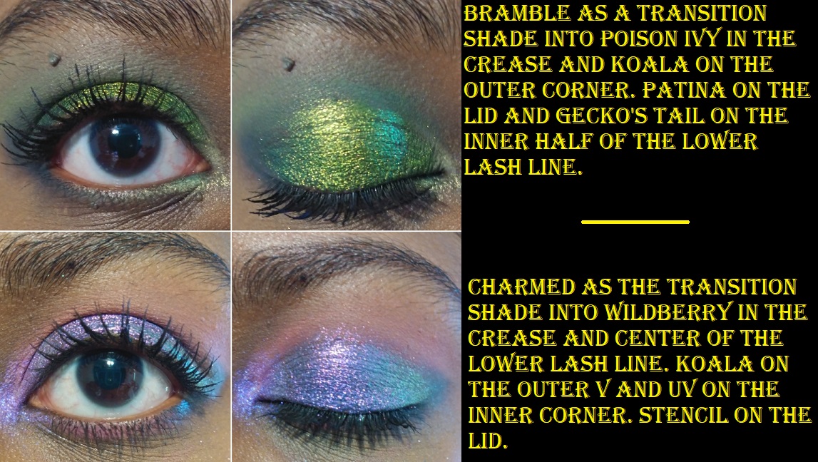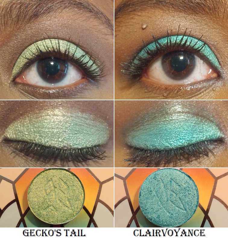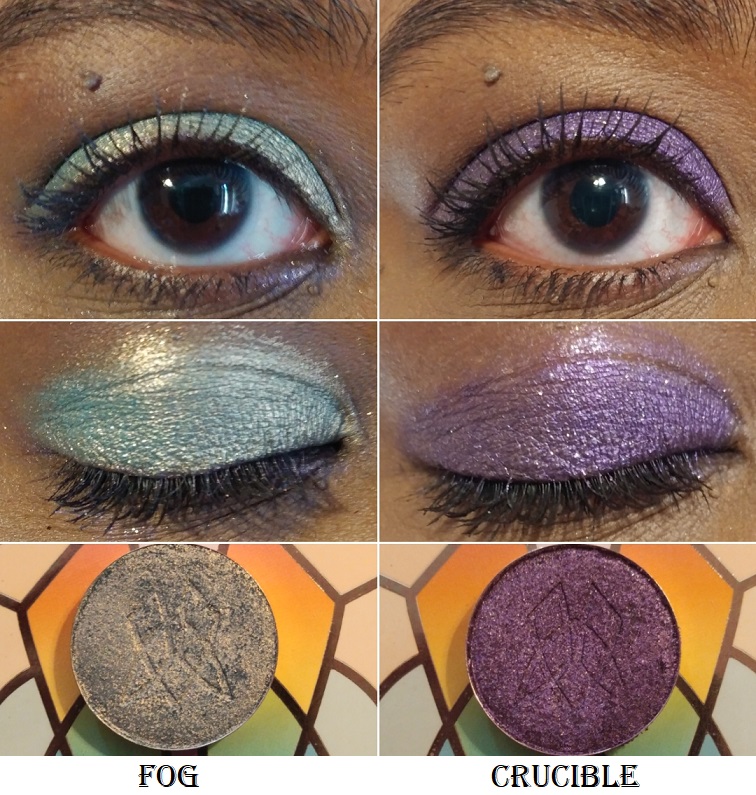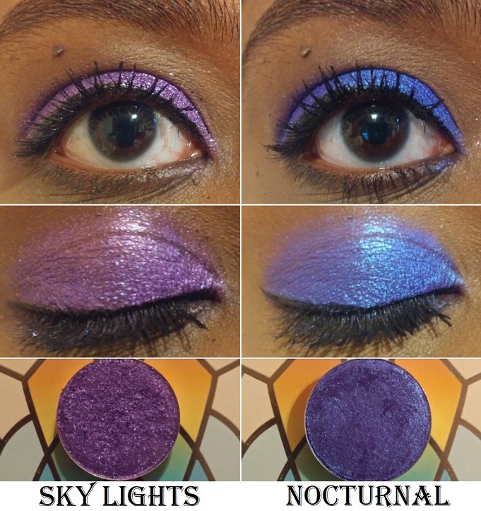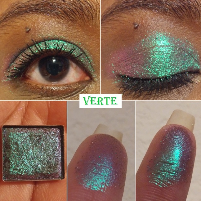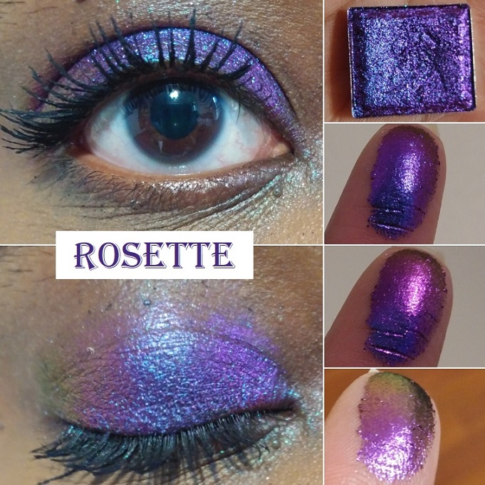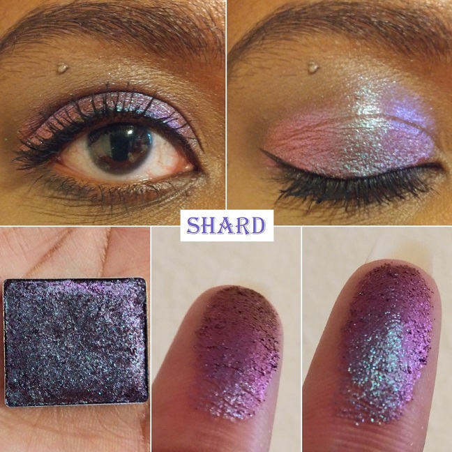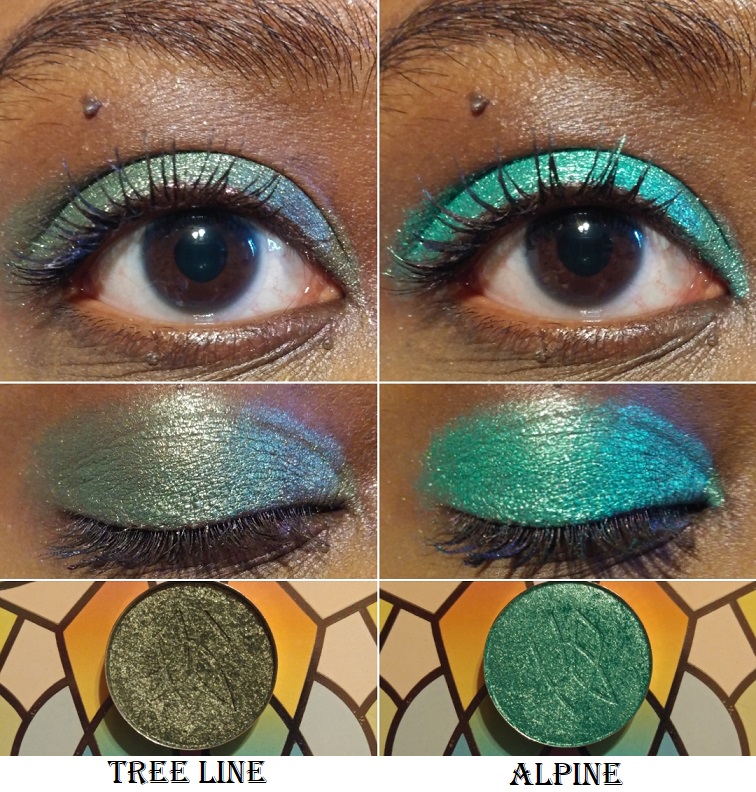 The hardest parts about comparing multichromes are that the shades in the pans don’t necessarily correlate to how they will look on the eyes, especially depending on the lighting. Sometimes they look similar based on one shift at one angle, or in the dark, or in bright light, or in the pan, or the types of colors that they shift to. Sometimes it’s only the base color that is similar.