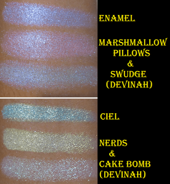 The duochromes were easier to find comparisons with other brands, but the level of glitter/sparkle in Clionadh’s shadows tend to be so intense that they ended up not looking the same, despite having similar base colors.