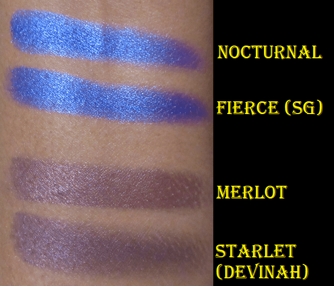 Nocturnal – from Team Witchcraft. This “indigo base with a blue reflect” was also part of my first order. I love bluish-purple eyeshadows but the tones of this seem special. I love vibrant blues and there is nothing subtle about this one!