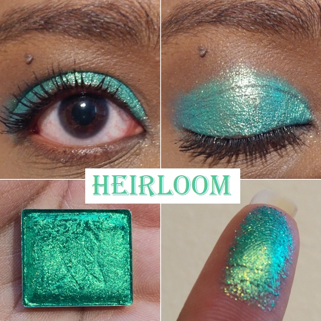 Heirloom “has a teal green base that shifts gold-green-turquoise.” Green and gold is a classic combo, but the base color is what gives this shade a unique twist. It’s such a fascinating shade that I don’t utilize enough.