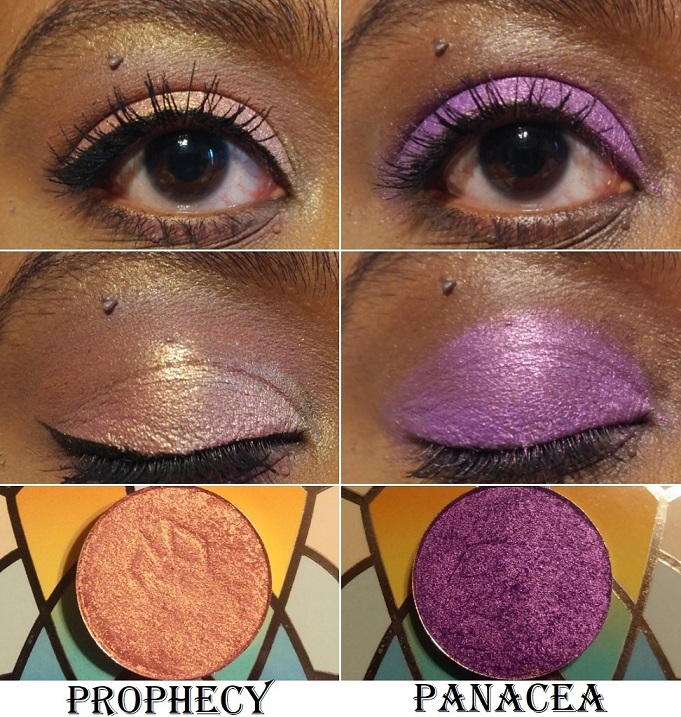 Prophecy – from Team Witchcraft. This is the pinkish gold type of shade I always want, but when some brands make this kind of color, it looks more white than pink on my lids. This one is the same as the pan color, which makes me very happy.