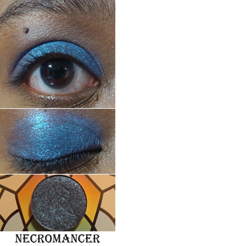 Necromancer – from Team Alchemy. It has a “blackened-blue base with a teal reflect and silver sparkle” that looks similar to Ursa in the pan, but the teal reflect makes it look brighter and more vibrant than Ursa.