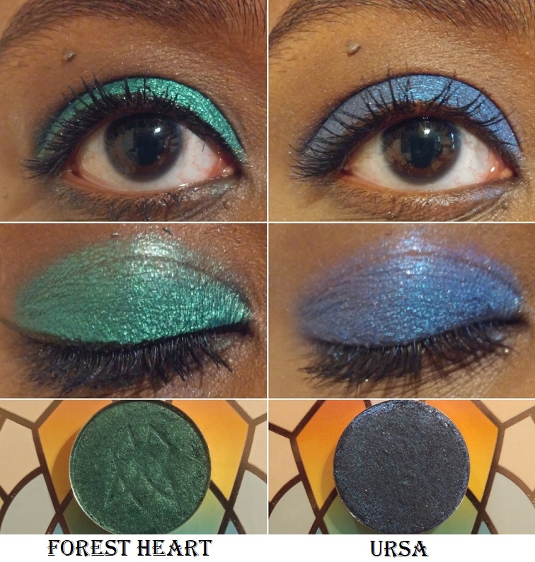 Forest Heart – from the Woodlands Collection. It’s described as a metallic teal-green and I always thought it had a bit of a blue tinge, but it just looks like a medium-deep green on my eyelids. Sky Lights, Nocturnal, and Forest Heart remain my top three favorites out of the standard eyeshadows. It’s very easy to overlook the “regular” shadows when you have the Stained Glass collection available, so if it wasn’t for these three shades blowing me away, I wouldn’t have continued purchasing from the standard eyeshadow collections.