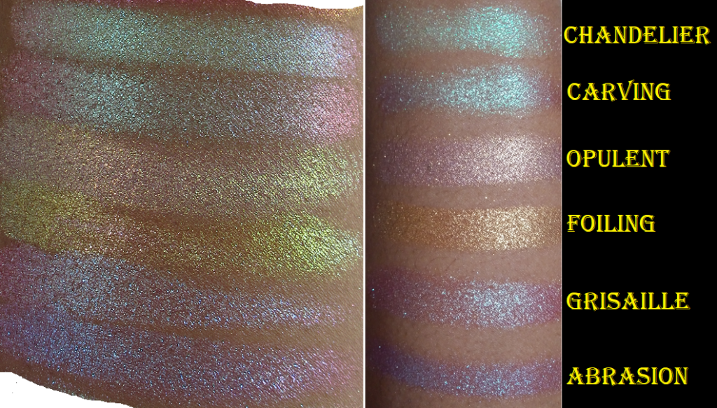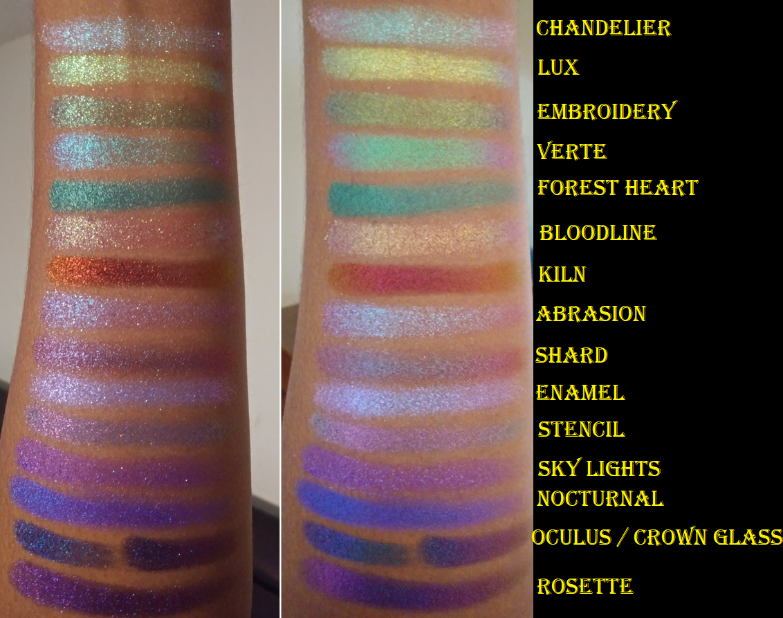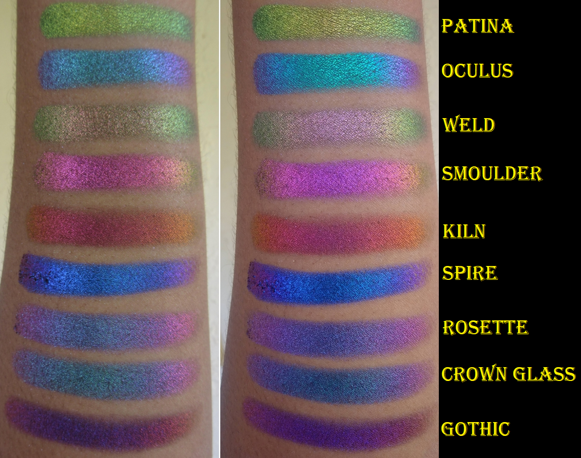 I have 19 out of the 23 currently in the collection. The missing shades are Corrosion, Ornamental, Kaleidoscope, and Engrave. From pictures alone, those four don’t look the most unique or shifty to me, so I decided not to buy them just for the sake of wanting to complete the set.