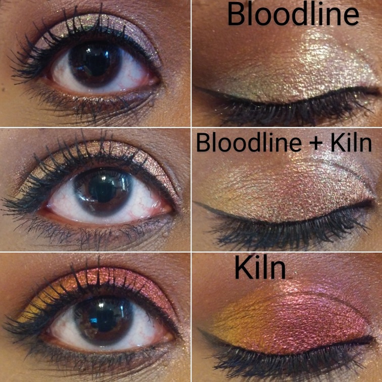 Bloodline “has a burgundy-berry base that shifts gold-green-turquoise-blue-purple.” This is definitely my most used shade of the Vibrant multichromes, and among the top most used of the Stained Glass collection. In February’s preorder sale, this was the second shade to sell out. It’s definitely one of the favorites. The berry tones don’t show on me as much as I expected, but I still love this shade so much. When I’m looking to add a little more red/warmth, I pat a little bit of Kiln on top and it gives me exactly what I am looking for!