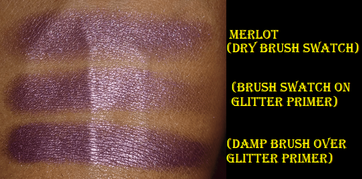 Merlot – This is a metallic plum shade from the Ultra Metals Collection. It looked a little grey in some of the swatches I saw online, so I was much happier with the actual color. It looks very rich in person. It also looks like a regular shimmer or satin shade when applied dry. With a wet brush, this shade looks much more metallic and pretty. This is currently the only shade I have from the Ultra Metals because I was using this shade as a tester before I considered buying more.