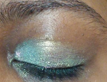 Crystalline – from Team Witchcraft. I normally wouldn’t be interested in this light of a purple shade, but the duochrome aspect made it so much more intriguing of an eyeshadow. The reflect color is lime green but on my lids, I thought it looked aqua.