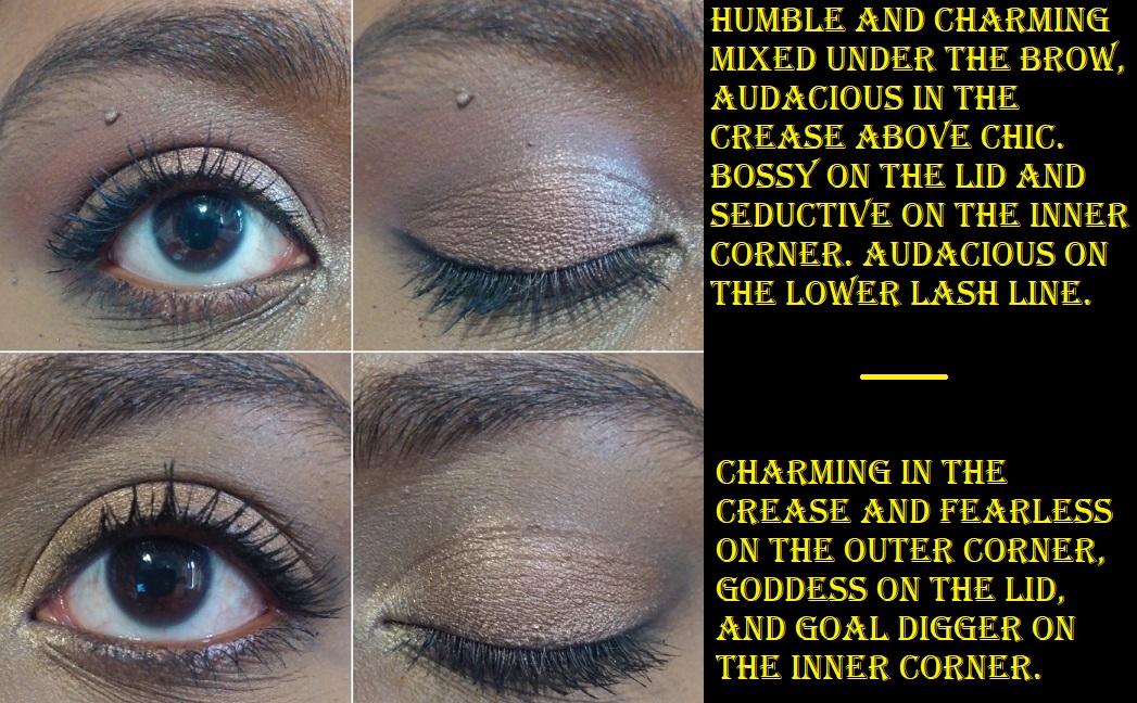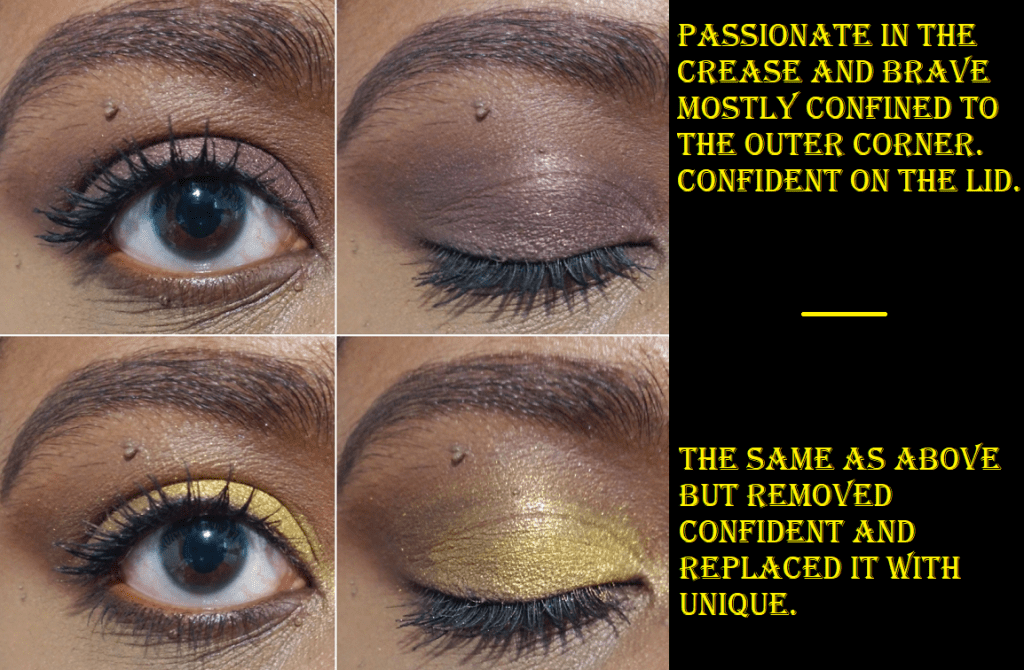 I’m not sure if the formula was changed or updated when Persona updated the packaging of this palette from cardboard to plastic, but I do find these shadows to be a tiny bit on the drier side. The shadows still perform nicely despite being slightly less pigmented (excluding Fearless). I was also surprised to see how grey Maverick looked on me considering how brown it looks in the pan. The overall color story is a little more cool-toned than I expected, but I like having some of these shades anyway. Ironically, I still have to mix Humble and Charming together to highlight under my brows (to avoid looking ashy) like I do with Kind and Loyal. Goddess is a brighter alternative I wanted alongside Resilient. Goal Digger is the more traditional gold shade I wanted alongside Unique. Audacious is the kind of shade I love to have in the crease, so I’m very happy to have that one. It leans more orange than than the shade Passionate which leans more pink. One of the things I really wanted from the Identity Two palette, after using the pink leaning white shade called Honest, was a white leaning gold. When I saw Sassy, I was hopeful this might be it, but it’s more of a silver shade. If Persona ever makes an Identity Three, I hope that pale gold will be in there, though I can still use Goal Digger for the purpose I envisioned.