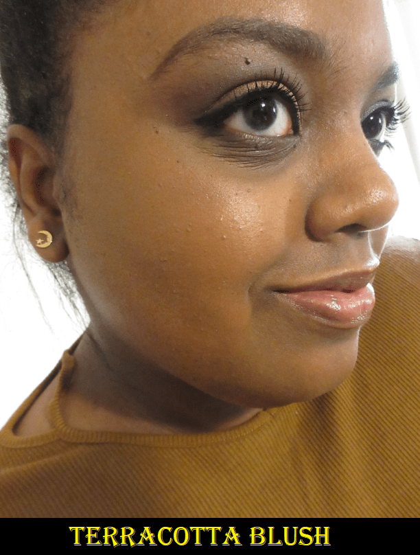 Terracotta is the newest addition to the Super Blush range. As I went completely bananas for blushes last year, I naturally had my eye on them for a very long time. It was difficult to find anyone with a deep complexion wearing Georgia or Carmel via Instagram, Youtube, Persona’s website, or Ulta’s site. There was only one woman I could find, who was darker than me, and I could hardly see the colors on her cheek so I thought perhaps these shades just weren’t meant for me. When Terracotta was released, I had an even harder time trying to figure out if this shade would work for me or not, especially as even the color in the pan looks vastly different depending on the lighting. I watched one of Sona’s videos (owner of Persona) and it looked pretty light on her, but she mentioned that this blush gets much deeper the more it is layered. The website also listed Terracotta specifically as being suitable for medium to dark skin tones. My foundation shade among inclusive ranges like Make Up For Ever, Nars, Fenty, etc tends to be in the beginnings of the dark category and often called medium-dark, sometimes even the tail end of the tan category. So, I figured this should give a subtle color to my cheeks at the very least. Considering how often MAC’s paler shades surprisingly worked for me, I decided to give it a try and purchased the Georgia and Terracotta duo (with the intent to give Georgia to a friend for Christmas).
