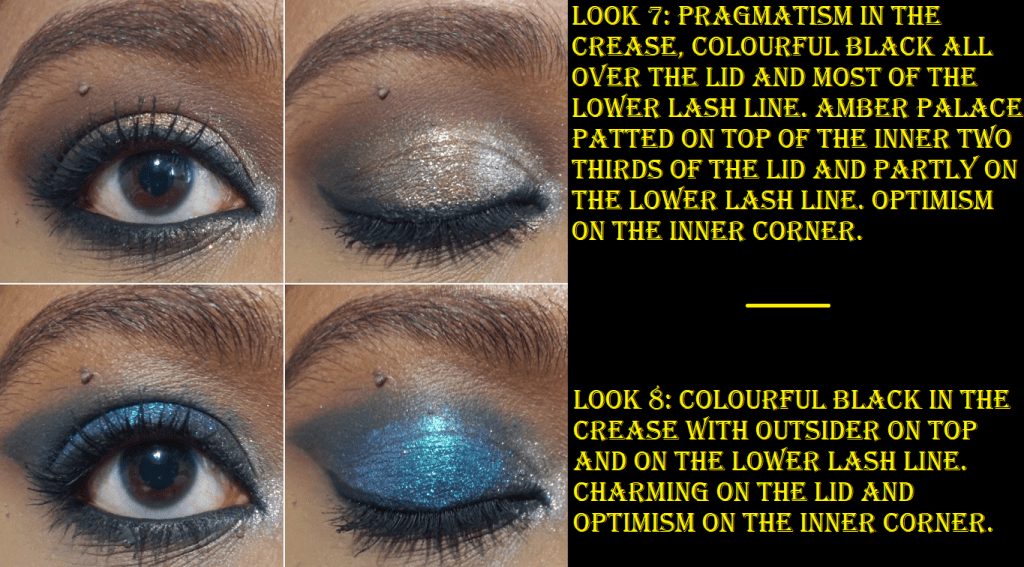 In Look #8 I forgot to mention that Colourful Black was also applied all over the lid before Charming was added on top. This is what caused the stronger blue tone to the shade.