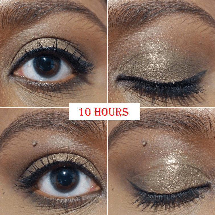As for the gold shades, Opulence has larger shimmer particles and takes on more of a copper gold tone. Lavish is a yellow-toned gold with finer shimmer, and when I put I these two next to each other on each eye, I could see the difference. However, as time went on during the day and the shadows started to dull, but not fade, they looked less different than before. In the future, I will likely stick to using Opulence on the lid for the sparkle factor and Lavish on the inner corner so I can worry less about it getting in my eye. They serve different purposes due to their consistencies and not as much for their color.