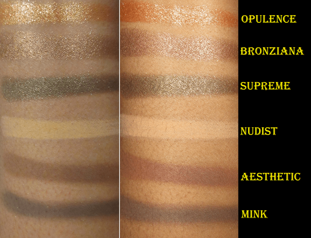 I would have been crazy for Supreme if it had a touch more green in it, similar to Antheia from the Natasha Denona Mini Gold palette. In fact, if I could recreate this palette, it would be a combination of shades from the Mini Gold, and I would add a brighter or darker green and turn up the saturation of the red in Aesthetic and the yellow in Eccentric.