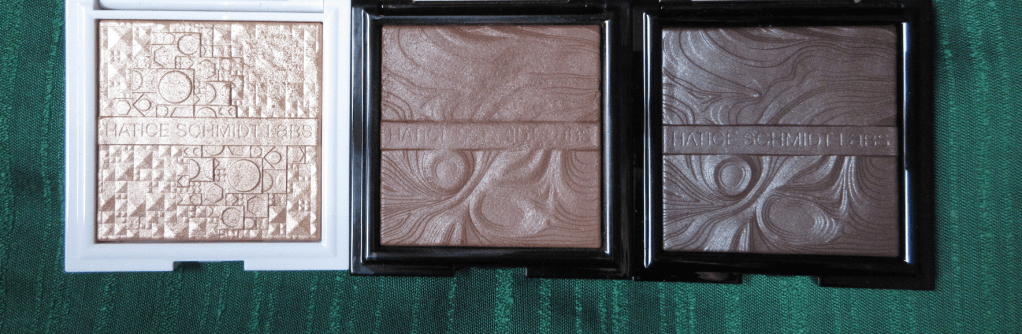 This is a beautiful formula and fans of Hatice Schmidt will likely be very happy with what they have, as well as those who enjoy luxury. The designs in the powder and sleek packaging exude a slightly edgy but high end feel to the products. The only aspect I question is the description as being changeable from subtle to intense. Unless I’m in a spot where the light will hit my face directly, it does not look as variable as that on my skin tone. Whether I use a lot or a little and dry or damp, I find it to be the same middle ground intensity because of the base blending so much in my skin (as if semi-transparent), which is one of the best features of the product. This helps make the highlighter look like a more natural glow, but without a lighter base color, the intensity is dependent on how much it reflects, which means it’s dependent on the lighting someone is in.
