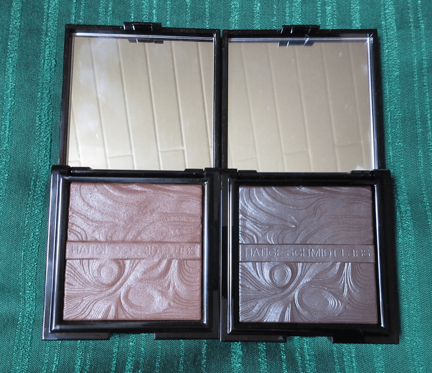 The highlighter comes in a white durable compact with a mirror inside. The bronzer comes in an identical compact but in black.
