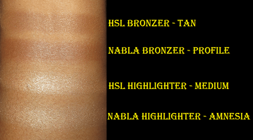 Besides the price, the main differences between the two brands of bronzers is that the HSL is an even softer powder and is not hard pressed in the pan like Nabla’s, which means it’s much easier to use and layer. HSL’s Tan is a little lighter and not as warm as Nabla’s Profile shade, but Profile is the current darkest in Nabla’s range. HSL goes many steps forward with their shade Deep.