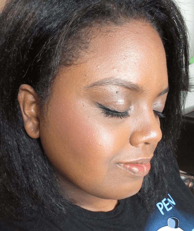 The damp brush makes it look a bit stark on my skin, so I prefer keeping it dry and recommend those who want more shine (regardless of the lighting) to layer the highlighter on top of a liquid illuminator. I love the way this highlighter looks on me when I apply a normal amount, so I’m happy with the formula as is and wouldn’t change a thing. On a rare occasion I like to be beaming, but otherwise the way it is now (subtle to nicely highlighted) is perfect for me. The shade looks a tiny bit icier now that I’ve gotten a “tan” but it will match better again when it fades.