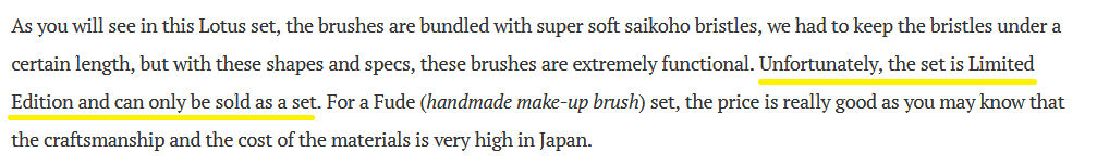 Yeah, it’s extremely rare that I end up liking all the brushes in a set. The only time a full set is usually worth it to me is if the brushes I want individually would end up costing the same price as the full set, but that is also rare! And thank you for the kind words! I’m glad I could help! Are there any in the lotus set you have your eye on specifically?