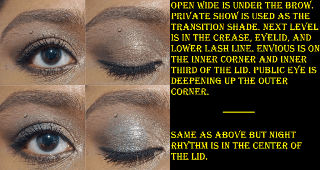 Open Wide adds brightness to my eye area and it is pigmented enough to even partially cover darker shadows. Private Show is a little light as a transition shade for me, but it still works.