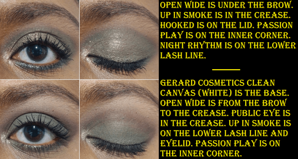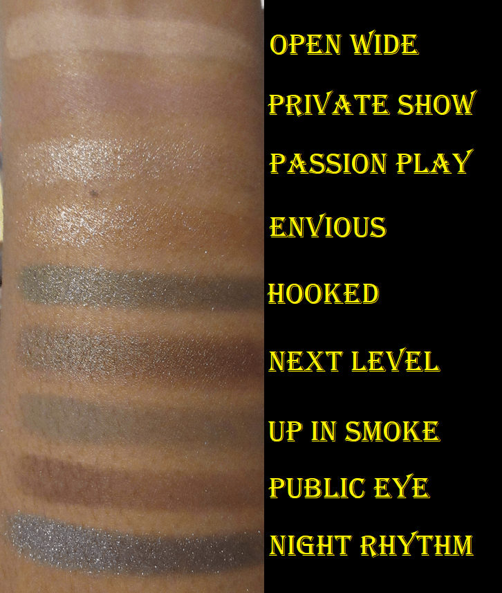 This has a great selection of mattes: a brightening, transition, colorful, and deepening up shade. Since I love bright colorful greens, I wish Up In Smoke was a bit brighter and less muted, but I can appreciate that the olive hue in that eyeshadow pairs well with the olive shimmer called Hooked. It’s similar to the way that Public Eye is the matte counterpart to Next Level.