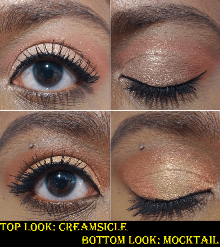 Prior to working on this post, I only used Creamsicle and Mocktail twice each. The photo above showed the looks I created for Instagram. I was very much into these softer shades at the time that I bought them, which was when Colourpop first started making quads in this clear packaging. I love the concept of being able to have a curated look without needing to think about it, and having all the shades show up nice and pigmented on my eyes and not give me any issues to use. I also liked the level of sparkle, which I now know has the chance of being PET glitter, so I’m a bit unhappy about that.