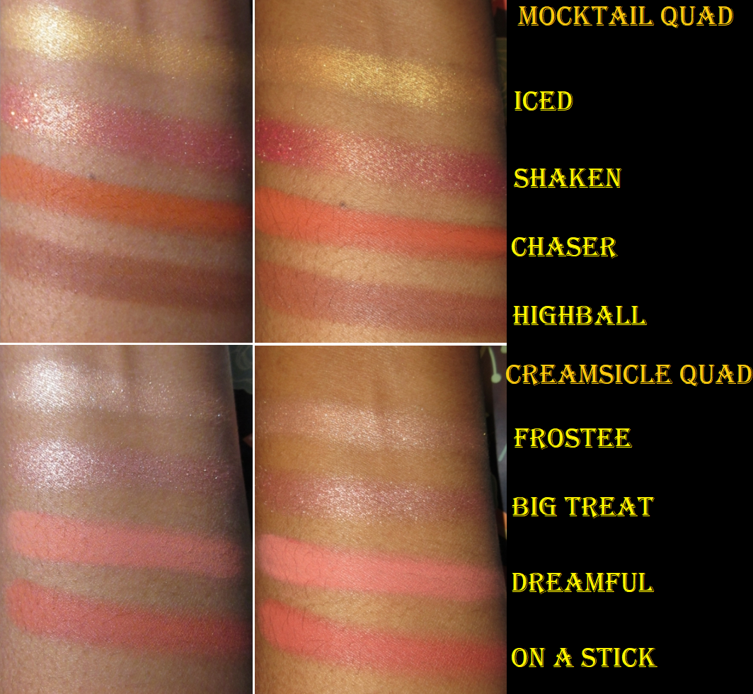 Colourpop Eyeshadow Quads in Creamsicle, Mocktail, and Secret Life of Scorpio