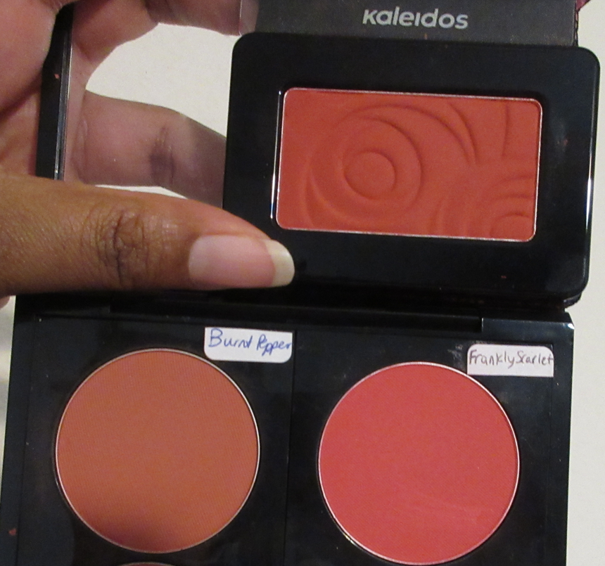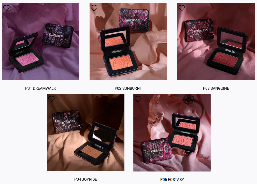 As an absolute blush fanatic, I was the most excited to try a blush from Kaleidos. The brand’s first attempt at blushes was a very non-inclusive release of two blush duos, so I was happy to see at least one deep skin friendly option this time. I will say that the Sanguine blush I purchased is not quite as deep as it appears on the website. This is why I’m not certain if the other shades are even lighter in person as well.
