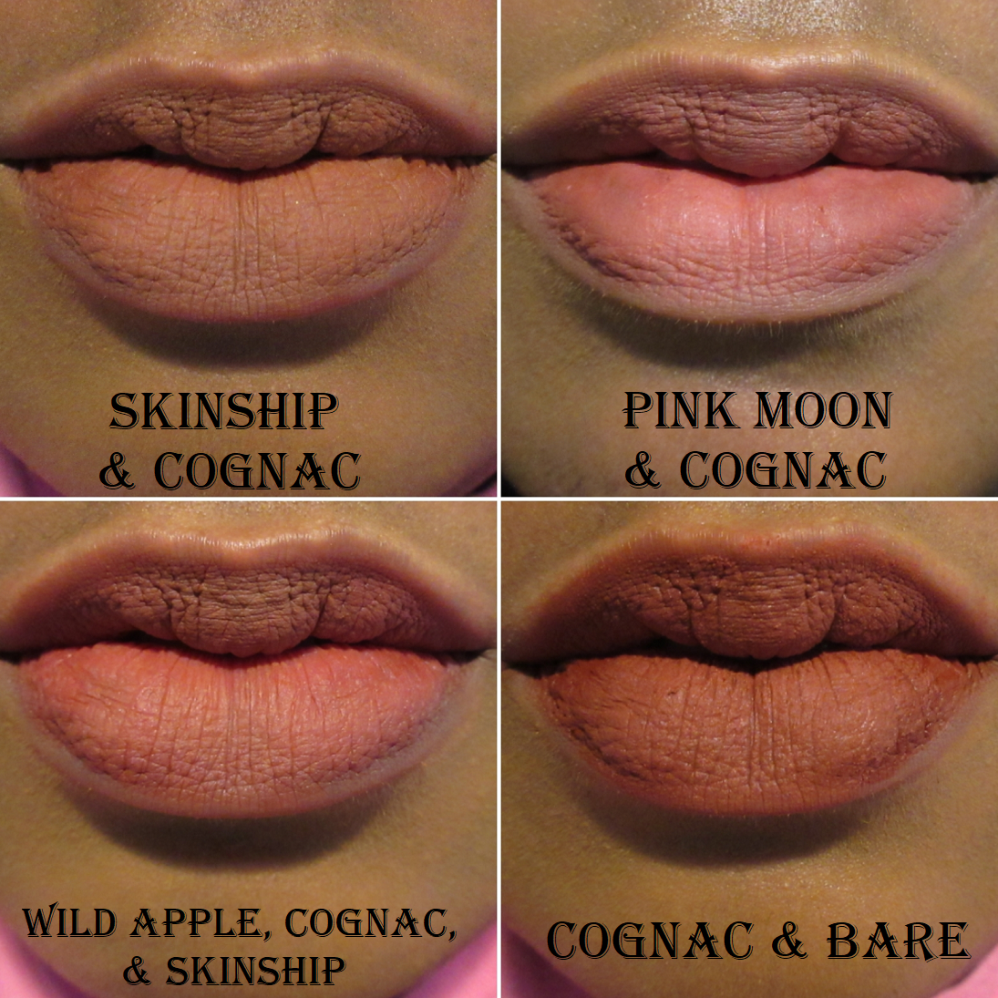 Mixing these together isn’t as seamless as I expected. I kept seeing Kaleidos ads on YouTube mixing one of the pink-red shades (I think Cactus Flower) with Agave to create a gorgeous purple lip. They did something else with Mahogany, so I expected them to essentially mix like paint, but my attempts haven’t yielded results as dramatic as that. Also, some influencer videos showed Cognac as being a lot closer to brown than it is, so I figured (possibly incorrectly) that Cognac would be better than Mahogany for what I needed.